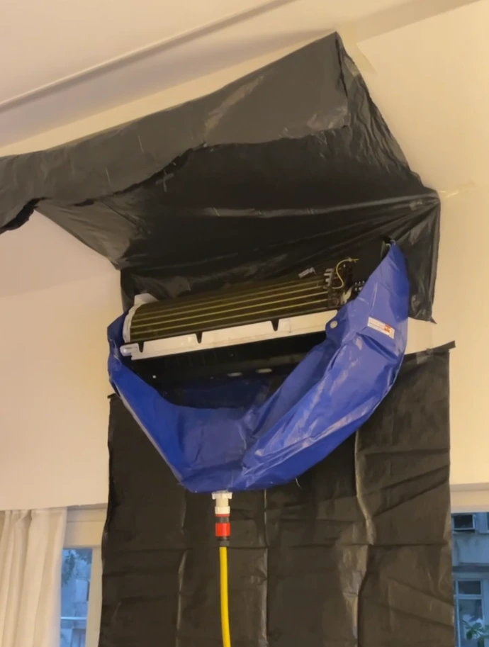 Higienização de ar-condicionado, com limpeza técnica dos componentes internos, remoção de impurezas e microrganismos, garantindo melhor qualidade do ar, eficiência do equipamento e maior vida útil.